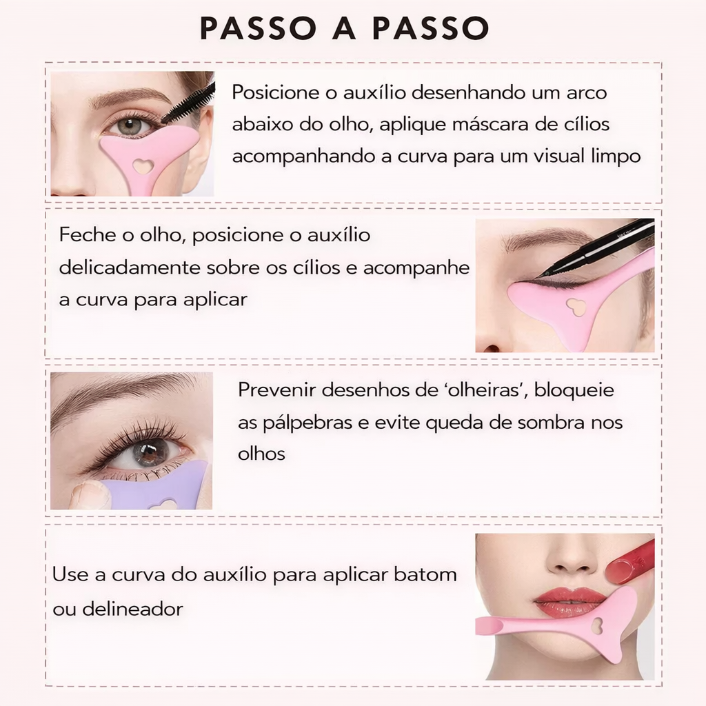 O Estêncil Multifuncional é o acessório perfeito para quem deseja praticidade e resultado profissional na maquiagem. Ideal para iniciantes e também para quem já tem experiência, ele auxilia na aplicação de delineador, máscara de cílios, batom e até no desenho das sobrancelhas.