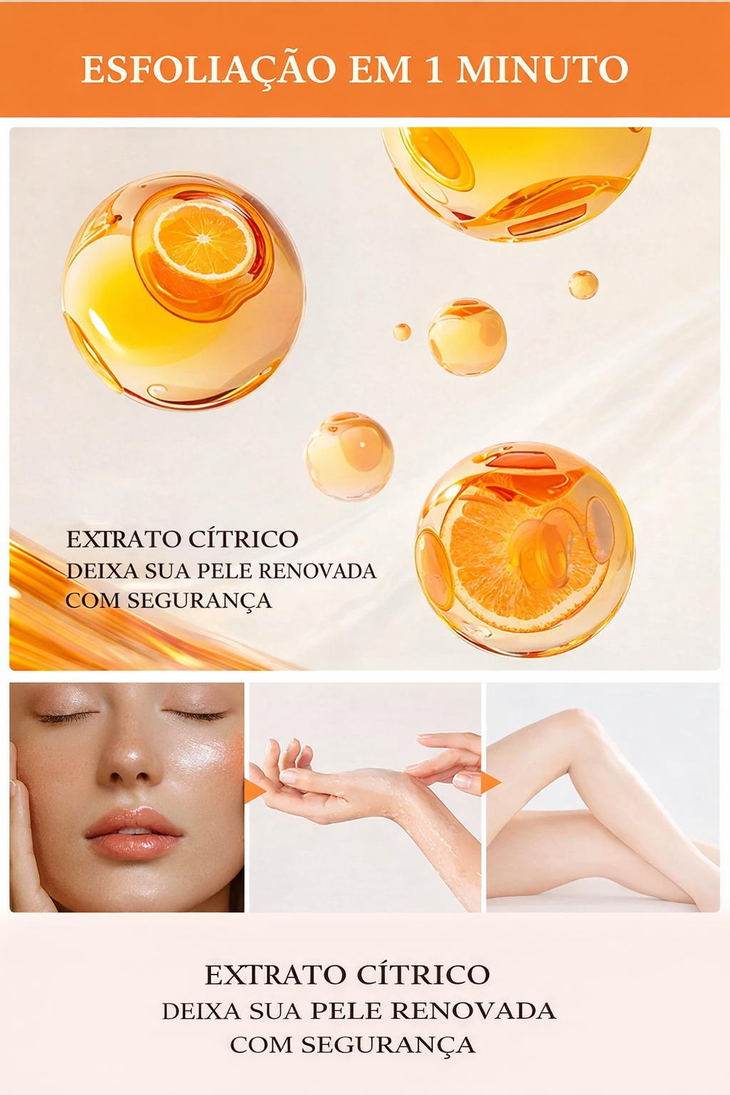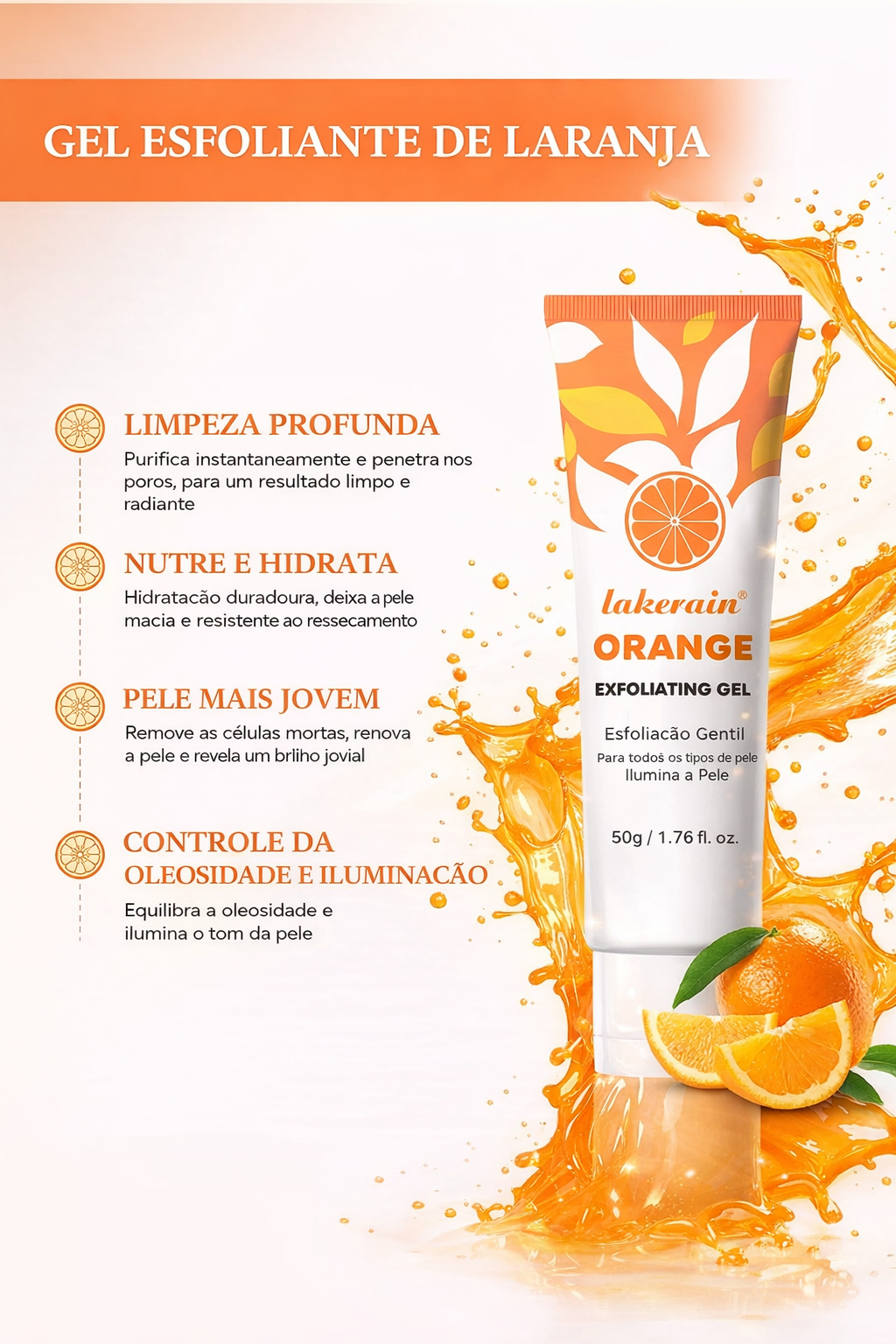 O Gel Esfoliante de Laranja é aquele cuidado que transforma a pele de verdade. Com fórmula suave e eficaz, ele remove delicadamente as células mortas, promovendo uma limpeza profunda sem agredir, deixando a pele visivelmente mais lisa, iluminada e renovada.