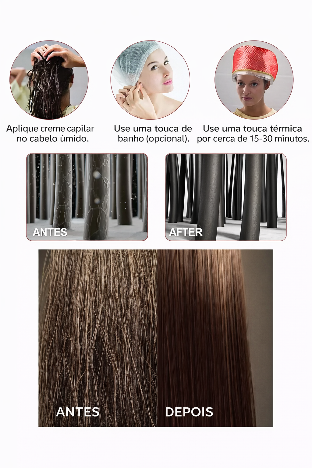 Basta aplicar seu creme de tratamento favorito, colocar a touca e deixar agir por 15 a 30 minutos para obter um resultado profissional.
