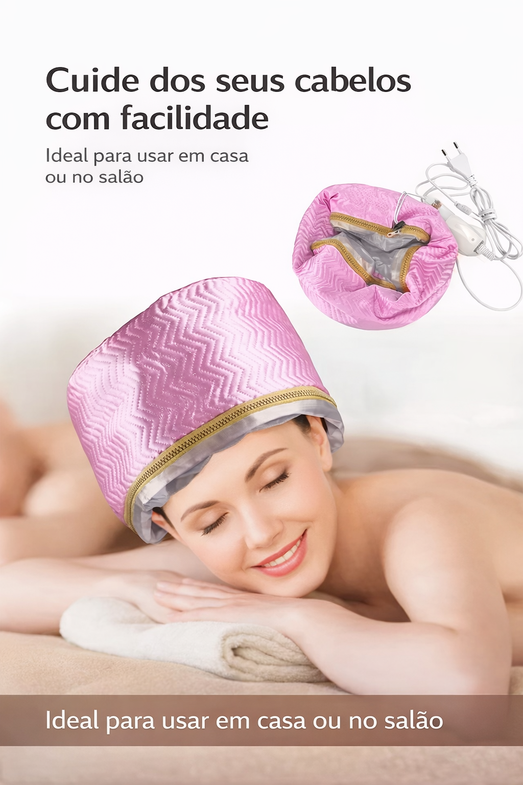 A Touca de Tratamento Térmico com Aquecimento Elétrico foi desenvolvida para potencializar máscaras, cremes e tratamentos capilares, ajudando os nutrientes a penetrar profundamente nos fios. O calor suave abre as cutículas do cabelo, proporcionando hidratação intensa, brilho e maciez incomparáveis.